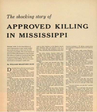 The state of Mississippi tried to cover up hatred. When Emmett’s body was retrieved put of the Tallahatchie River by a young white boy, Mississippi ordered that the box containing his remains was placed in not be opened and be buried immediately. Roy Bryant (then husband of Carolyn Bryant) and his half-brother J.W. Milam, confessed to killing Emmett in Look Magazine in 1956, sharing: “Well, what else could we do? He was hopeless. I’m no bully; I never hurt a nigger in my life. I like niggers — in their place — I know how to work ’em. But I just decided it was time a few people got put on notice. As long as I live and can do anything about it, niggers are gonna stay in their place. Niggers ain’t gonna vote where I live. If they did, they’d control the government. They ain’t gonna go to school with my kids. And when a nigger gets close to mentioning sex with a white woman, he’s tired o’ livin’. I’m likely to kill him.”