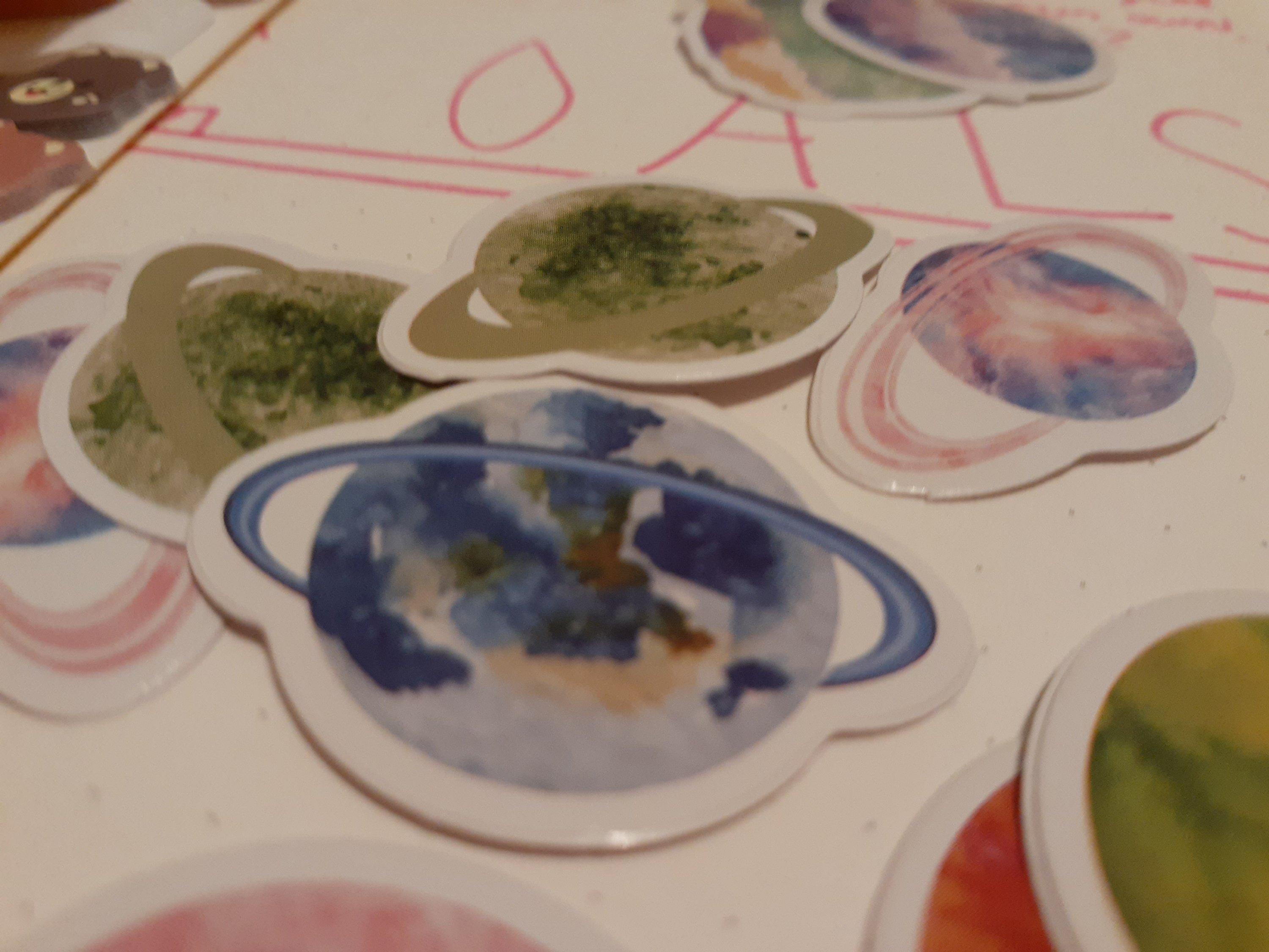 Now, the letter stickers however were pretty wrinkled upon opening. But for the price I paid for them, I am totally OK with that. Tape was going to go over them anyway to help secure them in place. The leather pen holders, washi tape and the galaxy stickers were awesome quality. I quickly assigned them to my homemade planner which I am excited to get into, despite it being for the year 2022.