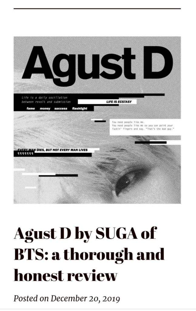 One of my first posts was talking about Agust D, and his first mixtape, AGUST D. I sent it to my then-friend at the time, and she really liked it! And the two likes I got on the post at the time were enough to get the ball rolling. And I haven’t looked back since.